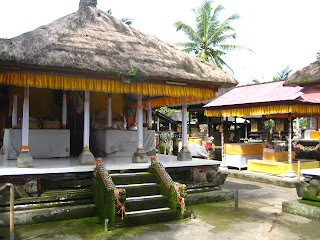 Bali is primarily Hindu. In the Hindu epic, the Mahabarata, Krishna explains what God expects of an offering: "Whosoever offers to me with devotion a leaf, a flower, a fruit, or water, that offering of love, of the pure heart I accept." These are some of these offerings. The women present them regularly throughout the day with devotion in ceremonial dress. They are everywhere: by entryways of homes, on cars, all over the ground. I'm constantly watching where I step so as not to offend.